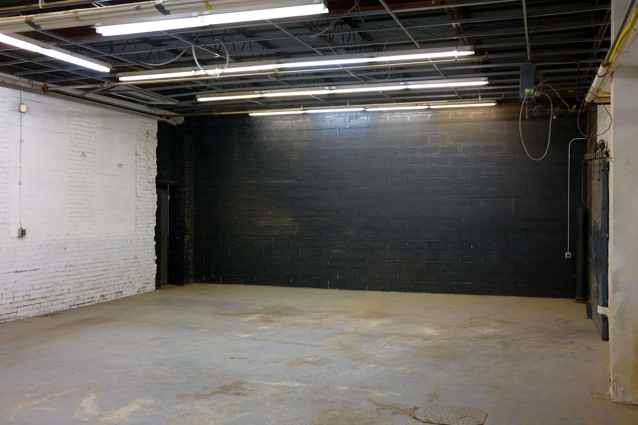 Ground-floor space with drive-in access directly onto Tutt Street. With concrete floors and high ceilings, it’s ideal for storage, light production, or as companion space to Stephenson Hall.